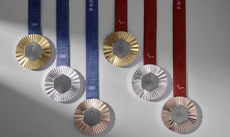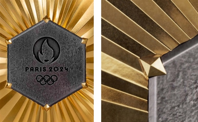 나폴레옹의 약혼반지를 만들었던 LVMH 그룹의 명품 주얼리 브랜드 쇼메가 디자인을 담당하면서 역사상 최초로, 하이주얼리 브랜드가 올림픽 메달을 만들게 되었습니다. 철거된 에펠탑의 조각을 육각형 모양으로 가공해 마치 보석처럼 메달 중앙에 배치했습니다.