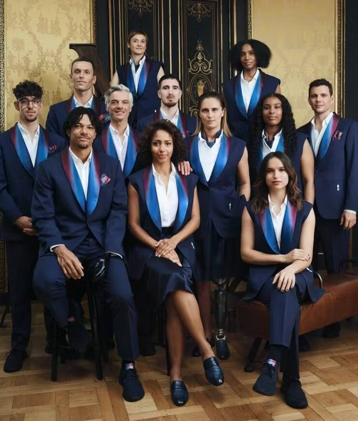 이번 프랑스 국가대표 선수단의 단복은 LVMH의 남성 명품 브랜드 벨루티가 맡았습니다. 프랑스의 우아함을 표현하기 위해 턱시도에서 영감을 받은 디자인에 재킷에 프랑스 국기 색깔을 넣었습니다. 재킷 안쪽에는 선수 개개인을 위한 경의의 메시지가 들어가 있다고 합니다. 선수 한 명 한 명을 위한 1,500벌의 의상 제작을 위해 장인 180여 명이 동원되었다고 합니다.