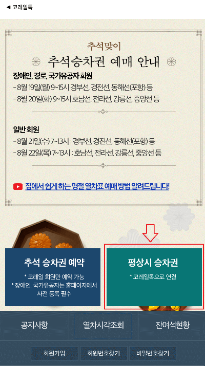 성공적인 기차예매의 첫 걸음은 회원번호를 정확하게 입력하는 것임을 잊지 마시고, 풍성하고 행복한 추석 연휴 되시길 바랍니다.