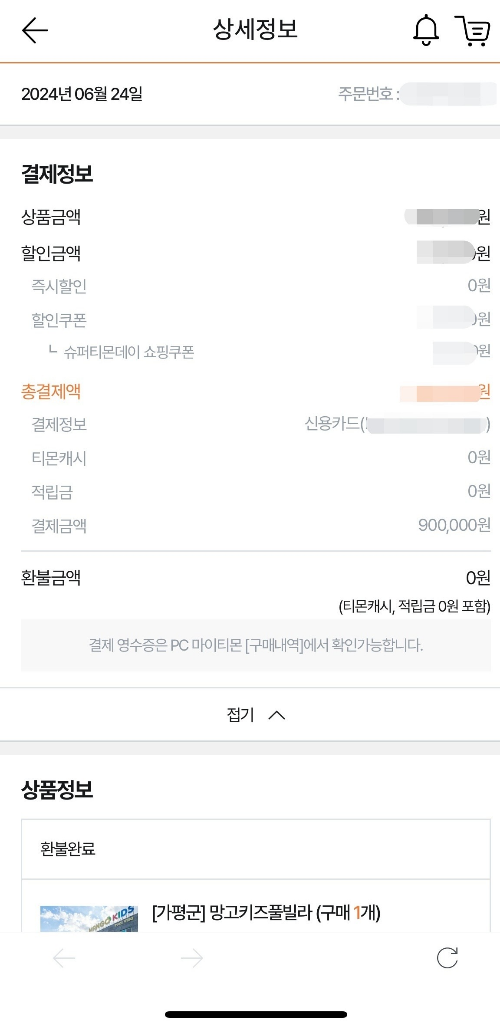 ③ 구매내역(결제일, 결제금액, 결제방법, 결제 카드사명(카드 소유주명), 상품명, 주문번호, 영수증(매출전표)